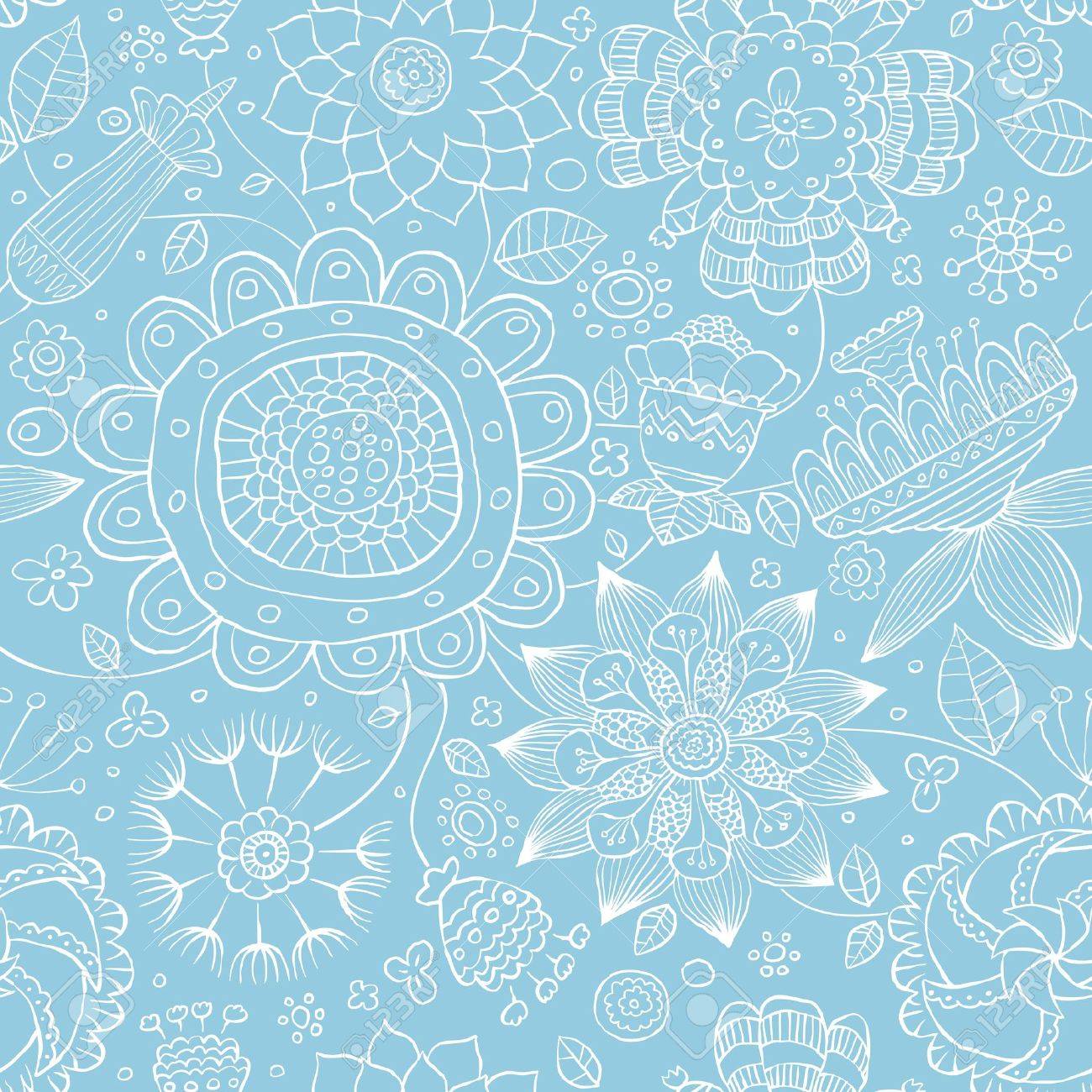 Seamless Floral Pattern On A Blue Background, Vector Royalty Free Cliparts, Vectors, And Stock Illustration. Image 9617164.