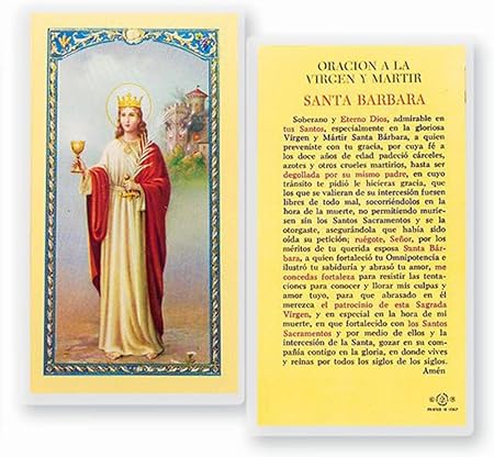 Oracion a la Virgen y Martir Santa Barbara Laminado Santa Tarjeta Español Recuerdos y souvenirs